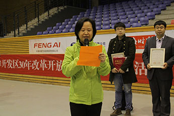 天津经济技术开发区慈善协会秘书长晁忠标代表主办方向参赛球队表示热烈的祝贺,向一直以来关注、支持和参与本届慈善篮球赛的各界朋友们表示衷心的感谢。晁忠标秘书长表示,本届慈善篮球赛阵容庞大,来自开发区、塘沽区、津南区等不同区域的29只球队踊跃报名参赛,58家企业鼎力支持,千余名观众现场助威,带动了更为广泛的慈善力量和爱心,圆了近300名滨海新区残疾人、贫困家庭学子及西部地区贫困孩子的上学梦,这是大家共同的骄傲,也是开发区公益慈善事业良好发展的成果,为开发区建区30周年画上了辉煌的一笔。